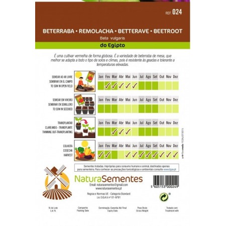 Beterraba - Do Egipto NaturaSementes 10,5 gramas