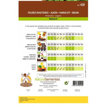 Semear ao ar livre no mês de abril a agosto. Semear em viveiro no mês de fevereiro a maio. Colheita no mês de abril a setembro. Sementes tratadas. Impróprias para consumo humano e animal, destinadas apenas para sementeira.
