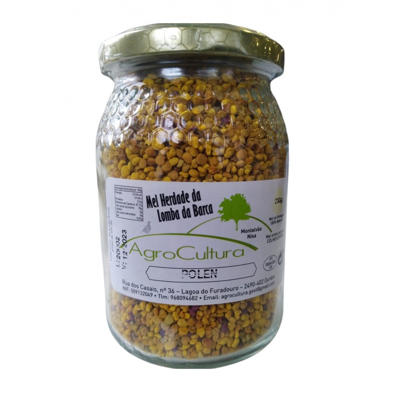 Descrição: É um produto da colmeia, colectado nos órgãos masculinos das flores, ao qual as abelhas adicionam substâncias salivares.