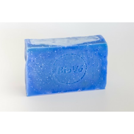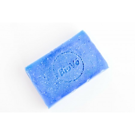 Ingredientes: Óleo de oliva, água, óleo de coco, manteiga de cacau, óleo de ricino, hidróxido de sódio, óleo essencial de alfazema, sal de Rio Maior e pigmento natural azul.
