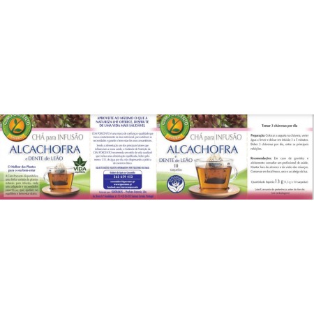 Chá de infusão de Alcachofra e Dente-de-Leão, hepatoprotector, ajuda a diminuir os níveis de colesterol e açúcar no sangue.